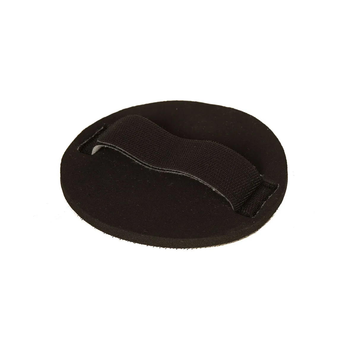 Tépőzáras koronghoz készült fekete kézi csiszolópárna állítható pánttal és 6 mm vastagsággal rendelkezik.